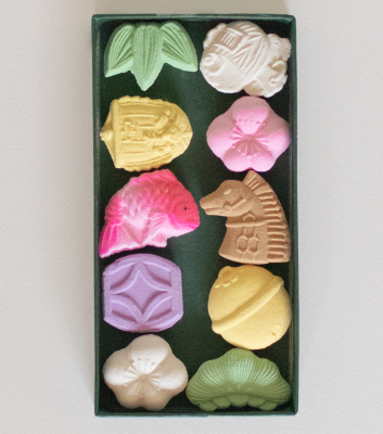 月々に詰め合わせ内容を吟味し、時節時節の色合いを楽しめる落雁の詰め合わせです。